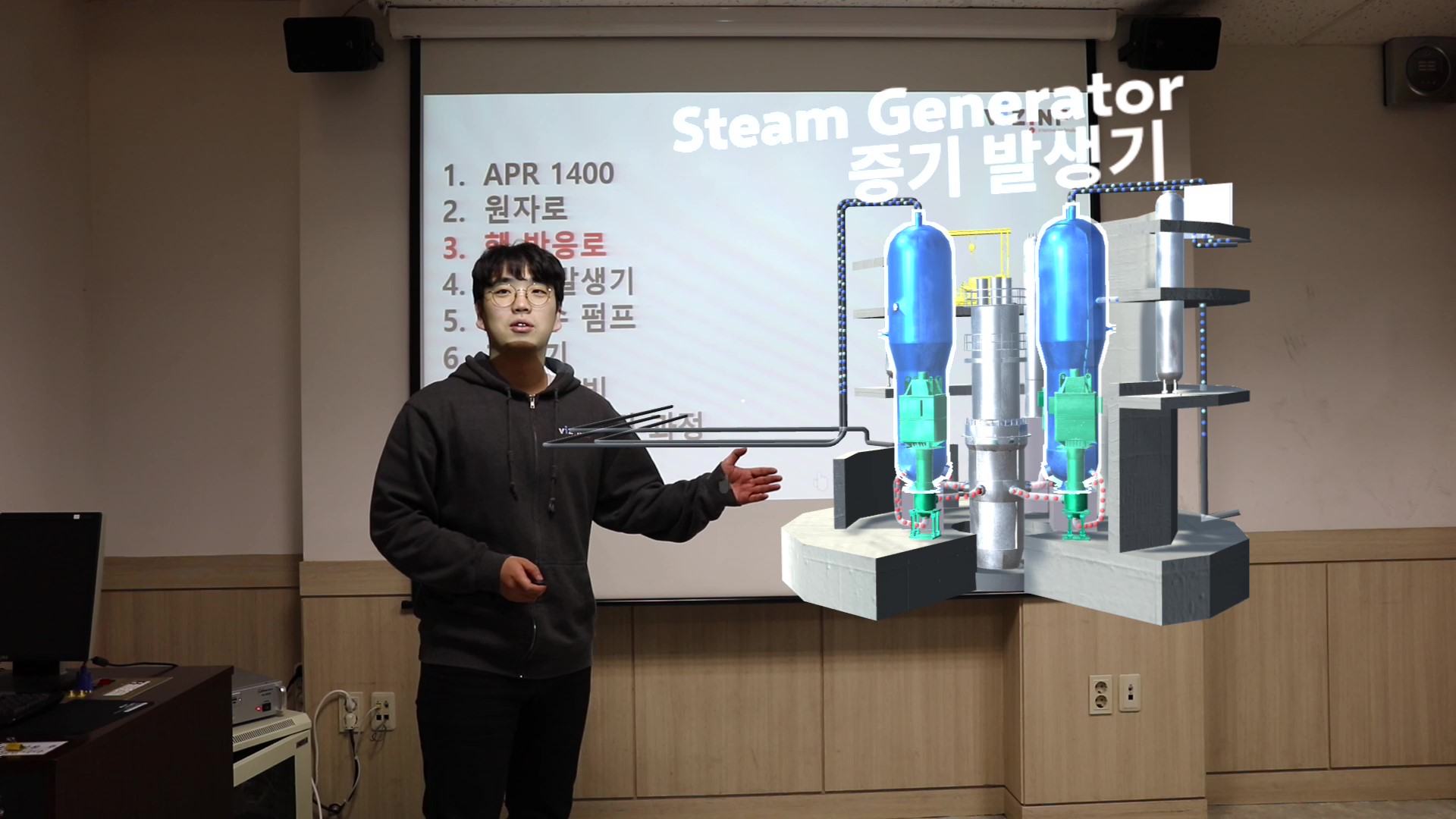 XR Presentation은 홀로그램 기반 비대면 교육·방송을 위한 시스템입니다. 원자력 통제 교육 과정 등 복잡한 기계·설비 구조를 3D 모델로 시각화하고, 실물 교재와 함께 설명함으로써 학습자의 이해를 돕습니다. 스펙테이터뷰 시스템과 연동해 강사의 모습과 홀로그램을 동시에 송출할 수 있어, 별도의 스튜디오 없이도 XR 기반 온라인 강의와 브리핑을 진행할 수 있습니다.