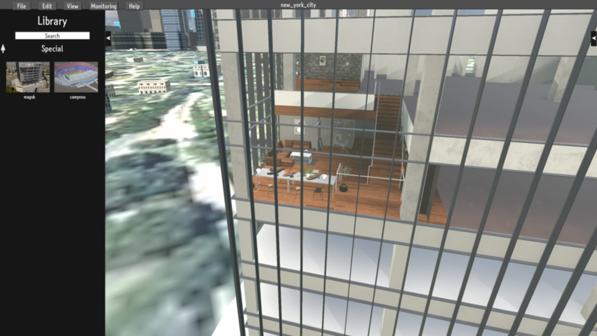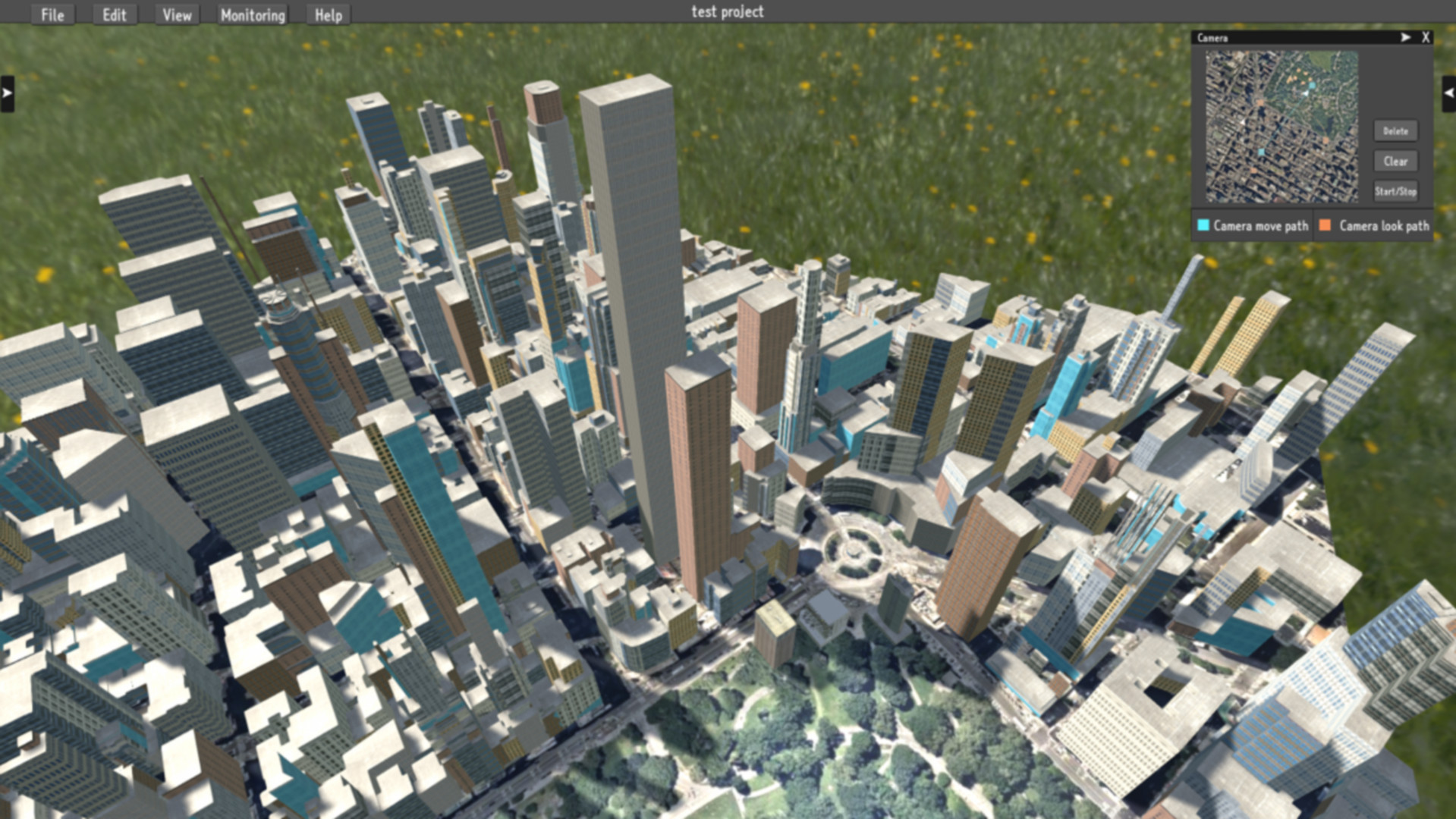 실제 지형 위에 3D 도시 모델을 얹어 스마트시티 계획의 사전 타당성을 검토할 수 있는 콘텐츠입니다. 온라인 지도 서비스를 통해 전 세계 지형 데이터와 항공사진 텍스처를 활용하고, 토목·건축 설계에서 지반을 다지듯 가상 지형을 편집하는 기능을 제공합니다. 하나의 도시 모델을 PC, VR, MR 등 다양한 디바이스에서 각기 다른 시점으로 관찰할 수 있어, 직관적인 도시 설계 검토와 프레젠테이션에 활용할 수 있습니다.