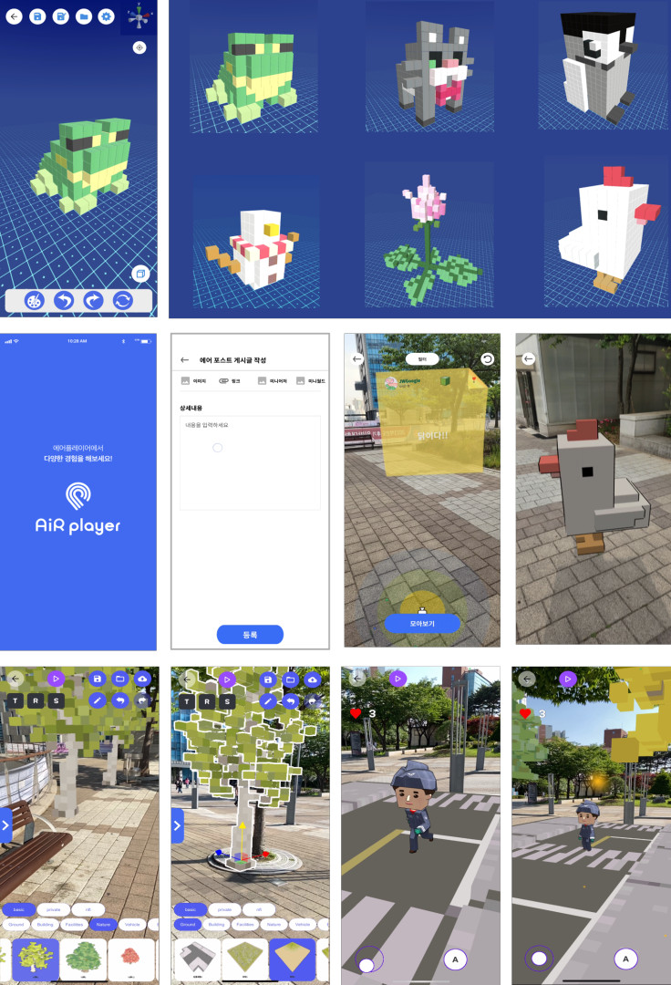 사용자의 실제 위치를 기반으로 가상 오브젝트와 콘텐츠를 배치하는 위치기반 AR 샌드박스 플랫폼입니다. 누구나 주변 공간에 게임, 캐릭터, 미니 체험을 올려두고 공유할 수 있는 샌드박스형 창작 도구를 제공하며, 제작된 콘텐츠를 AR로 함께 즐길 수 있는 멀티플레이 환경을 지원합니다. 자체 NFT 서버와 연동해 창작물을 디지털 자산으로 발행하고 관리하는 기능까지 고려해, 차세대 위치기반 XR 서비스의 기반을 제시합니다